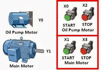 - X0를 순간 버튼으로 가정하고 오일 펌프 모터 신호(Y0)를 이용한 자기 유지 회로를 구성