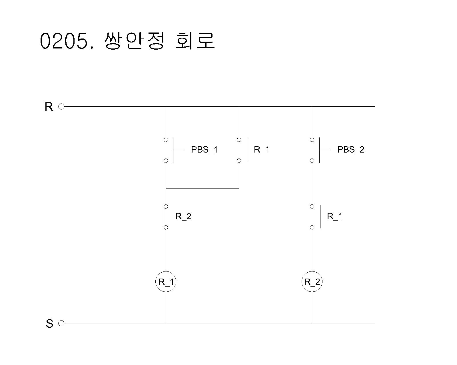 - PBS_2와 R_1을 직렬로 연결하여 R_1이 동작해야만 R_2가 ON 될 수 있도록 인터록 회로를 구성한다.