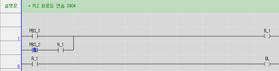 (R_1과 PBS_1은 직접 연결되어있다.) - PBS_1이 OFF상태이고 R_1이 ON으로 자기 유지상태인 경우 PBS_2가 ON되면 R_1은 OFF된다.